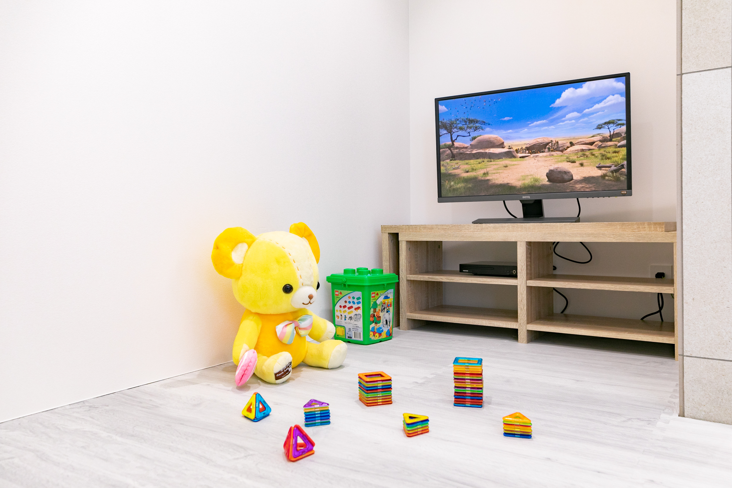 キッズスペース 小さなお子さまをお連れでも安心して受診いただけるよう、キッズスペースをご用意しています。絵本やおもちゃで遊べるので、お子さまに退屈せず過ごしていただけます。