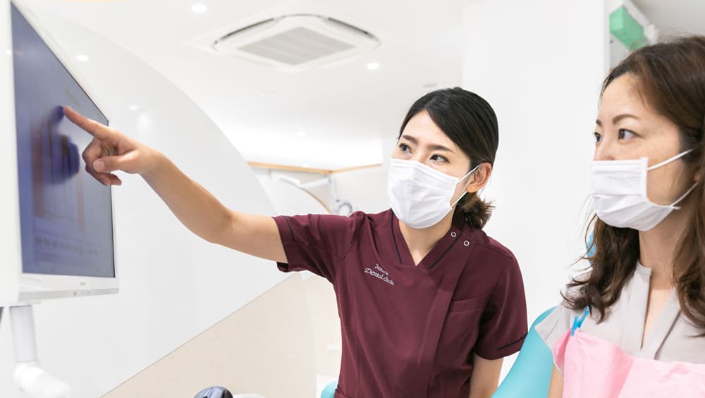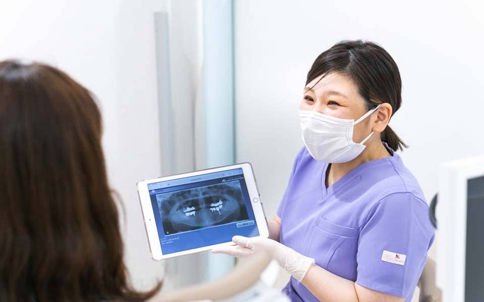 アニメーションやイラスト、撮影したCT画像などを見ながら、検査結果やお口の状態、治療計画などを患者様に分かりやすくご説明いたします。