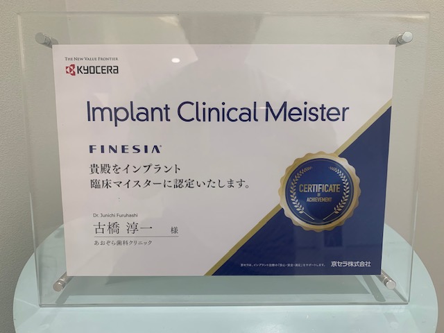 京セラ株式会社公認「インプラント臨床マイスター」認定取得
